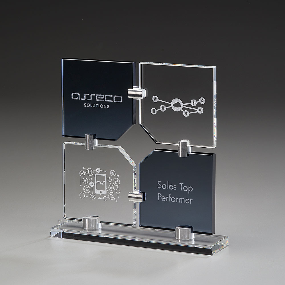 Vier Glasfelder, die mit Metallstäben verbunden sind – ein Award für Ihre Erinnerung!